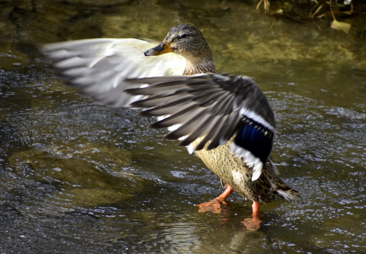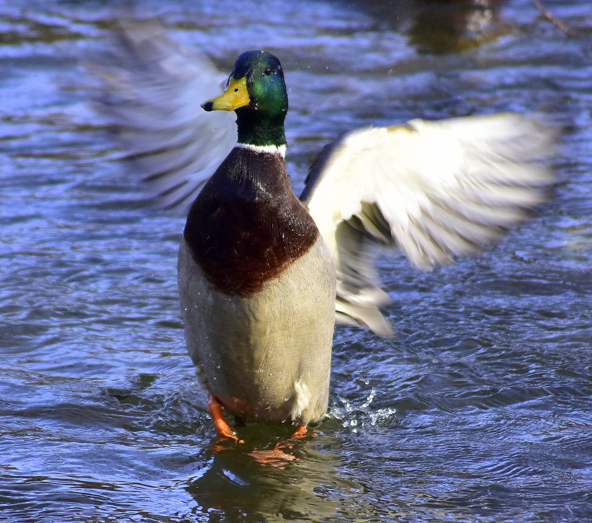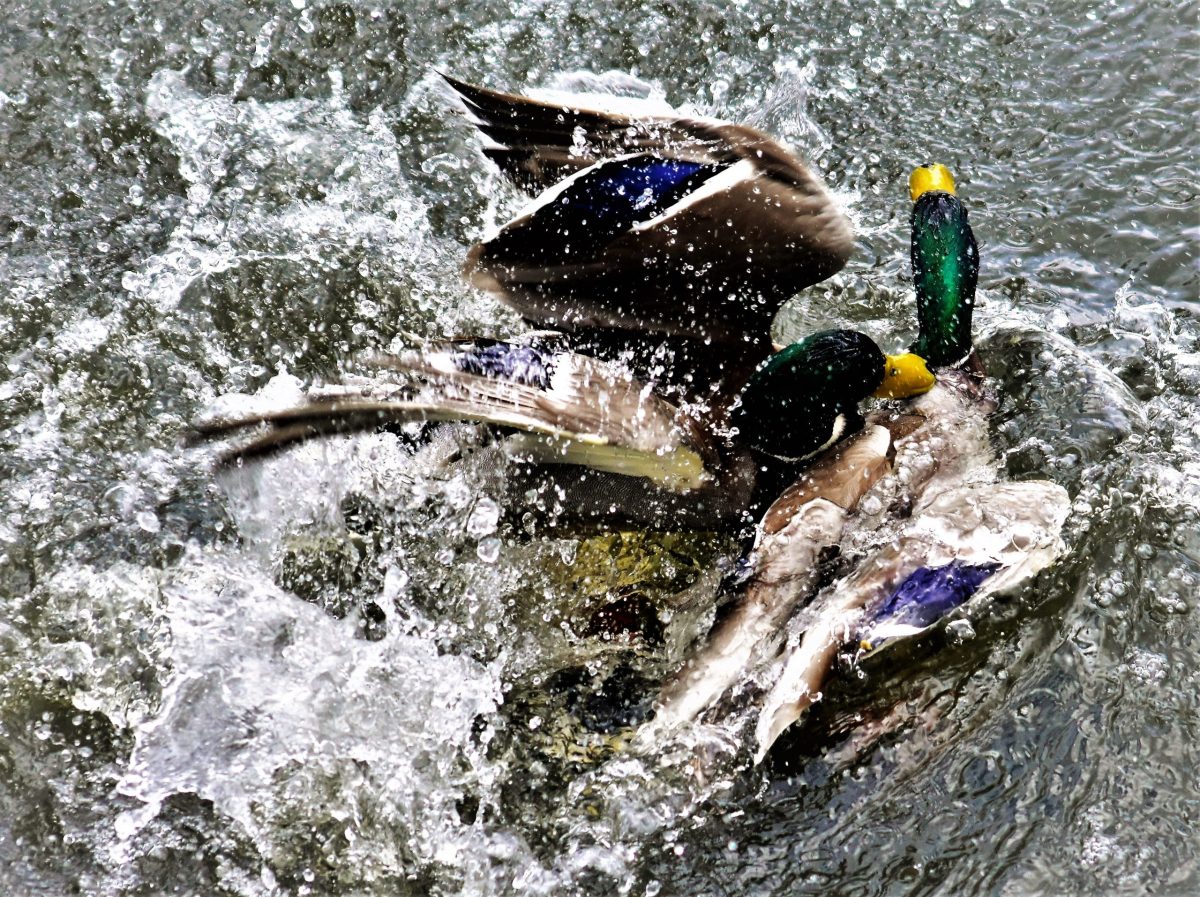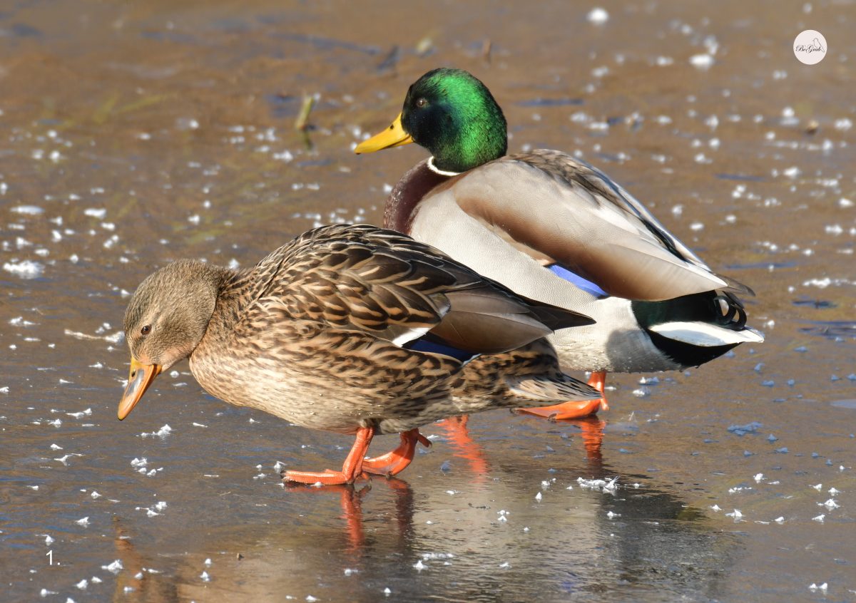 Krzyżówka – Najliczniejsza dzika kaczka w naszym rejonie. Jestem pewny, że każdy widział nie raz kaczki krzyżówki i mam nadzieję, że parę informacji o tych ptakach zainteresuje czytających. Dobrze pływają, rzadko nurkuje a w poszukiwania pożywienia zanurzają się tylko do połowy – głowa i szyja znajdują się pod wodą, natomiast ogon wraz z kuprem i nogami nad powierzchnią wody. Dzień rozpoczynają od kąpieli i wtedy możemy być świadkami przedziwnych pokazów pływackich. Po takiej kąpieli suszą skrzydła wymachując nimi jak by dyrygowały. Krzyżówki są wszystkożerne: zjadają trawę, rośliny wodne, owady, nasiona, owoce, ryby, skorupiaki i inne rodzaje pożywienia. Ich pajęczynowe stopy nie mają nerwów ani naczyń krwionośnych, przez co nie są w stanie czuć zimna. Trudno jest się zakraść drapieżnikowi do krzyżówek bowiem są czujne nawet podczas snu. Śpią z jednym okiem otwartym. W ten sposób kontrolują jedną stroną mózgu teren a druga strona mózgu pozostaje nieaktywna. Mimo, że wyglądają sympatycznie i miło, potrafią być agresywne. Pomiędzy kaczorami bardzo często dochodzi do bójek, które bywają intensywne. Kilka razy obserwowałem ich walki na zbiorniku retencyjnym przy ul. Borówkowej. Walka trwała kilka minut, pióra leciały, a woda była wzburzona jak w czasie sztormu! Nie posądzałem kaczek o taką agresją. Kaczor w szacie godowej ma charakterystyczną, błyszczącą, zieloną głowę, białą obrożę i brązową pierś.